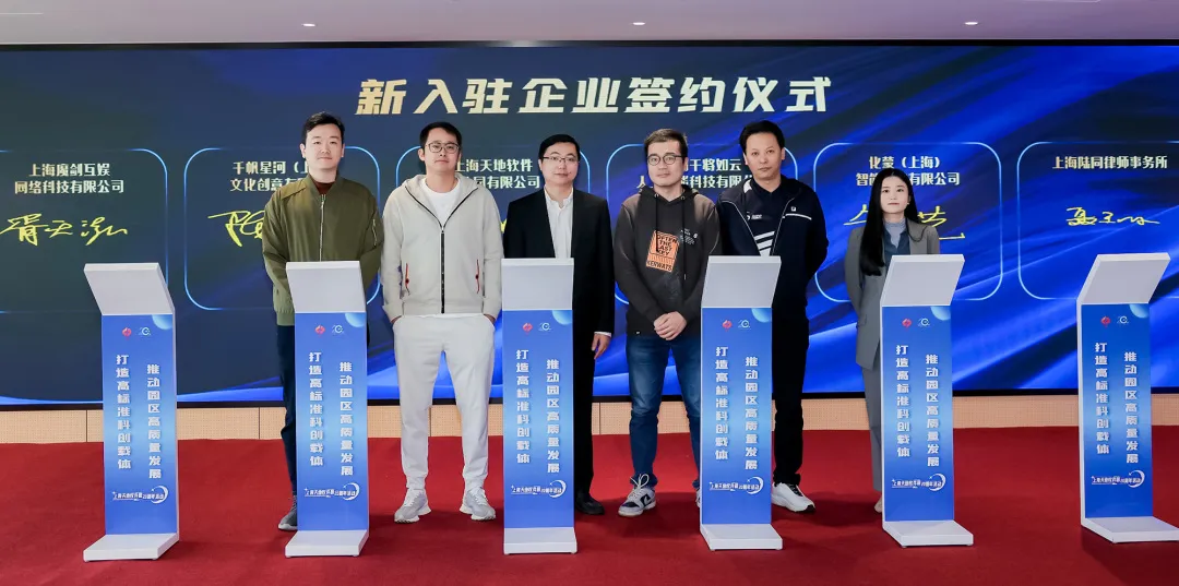 现场还为46家入驻园区10年以上的企业代表分别颁发共同成长10年以上、15年以上和20周年奖。同时,天地软件园还与上海魔剑互娱网络科技有限公司等5家新入驻企业现场签约。新老朋友同台庆祝园区建园20周年,传承与发展交织并蓄。