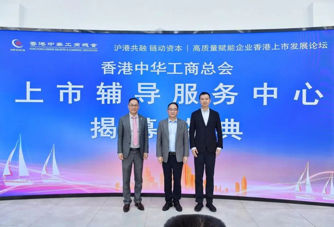 在与会领导及嘉宾的共同见证下,虹桥国际中央商务区管委会商务处处长杨旭波、闵行区委统战部副部长、区侨联党组书记何美龙,香港中华工商总会执行主席兼行政总裁陈峰共同为香港上市辅导服务中心揭牌。据悉,该服务中心将立足虹桥,为长三角地区企业赴港上市提供全流程的咨询、培育、辅导、上市服务及增值服务等。