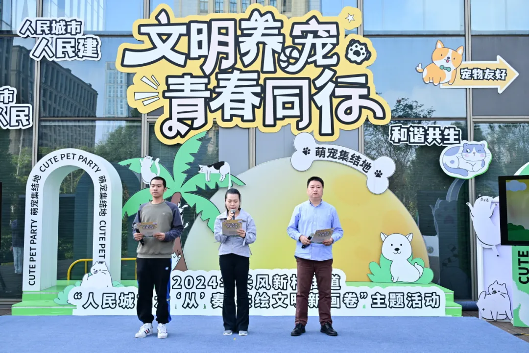 顾晓鹏为活动致辞。他表示,近年来,街道在宠物友好宣传教育、设施服务、青年引领等方面持续发力,提升居民文明素养,引领文明风尚。通过线上线下相结合的方式,传递文明养宠理念;先行先试宠物友好试点社区,合理规划公共空间,保持社区环境整洁;建立健全社区宠物管理制度,营造和谐共处的良好氛围。同时,在建设宠物友好进程中,鼓励青年积极参与社区清洁、宠物救助等志愿服务和公益活动,以实际行动践行文明风尚。接下来,街道将在区委宣传部、区文明办和团区委指导下,进一步激发市民群众参与热情,推动人宠和谐共处的良好风尚。