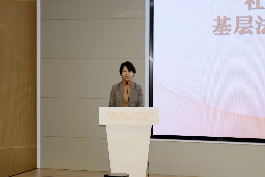 江川路街道党工委书记刘冬梅致欢迎辞;区司法局党委副书记、副局长丁妮介绍2024年闵行区基层法治观察工作成效亮点。