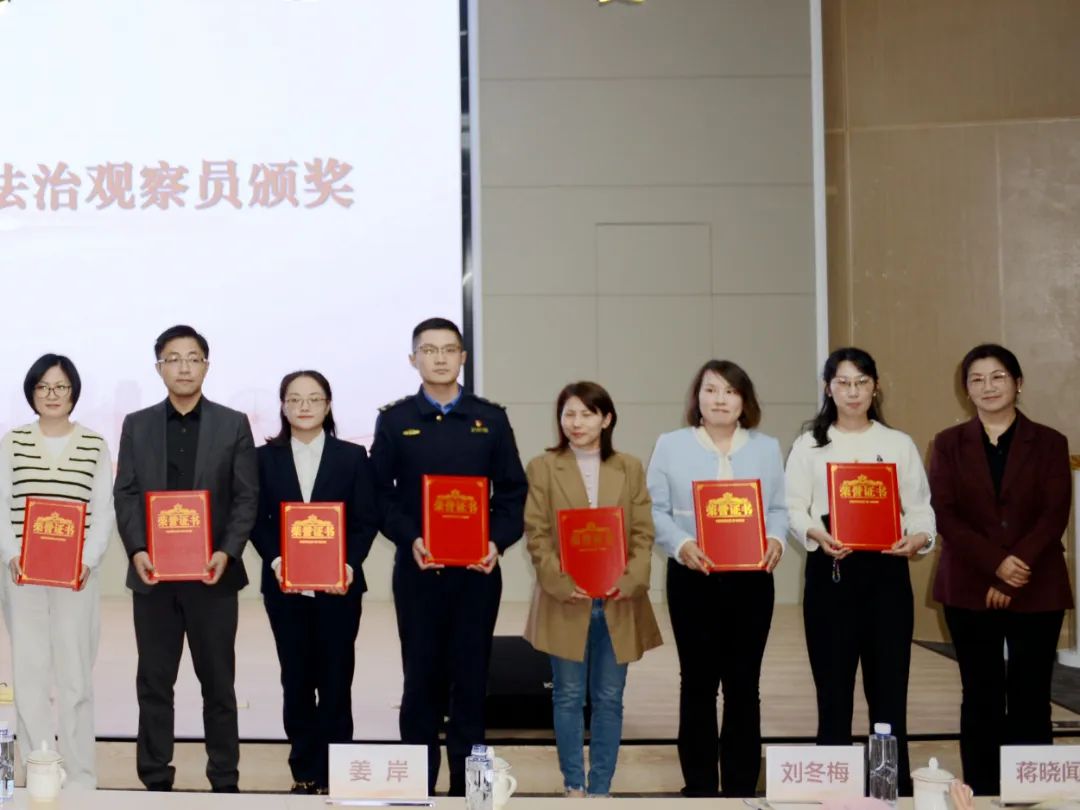 市司法局法治督察处处长姜岸为区级优秀基层法治观察员颁奖。
