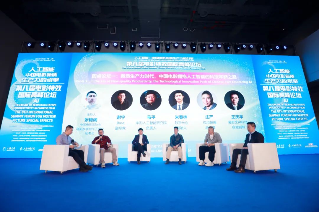 开幕式后,大会进行主题报告与圆桌论坛。业界知名专家、学者带来从业实践中的创制经验与积极探索,有关电影新质生产力的前瞻研究心得,以及对于AI赋能影视人才培养的展望。