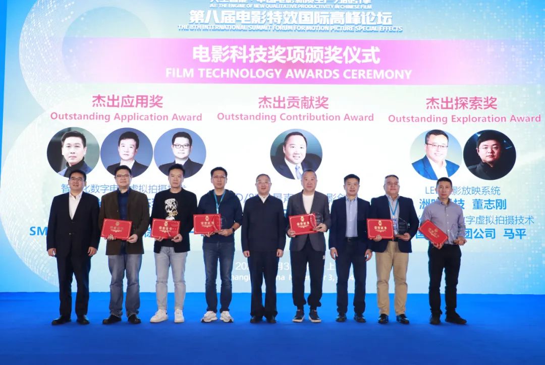 继上一届表彰为中国电影作出重要贡献的电影科技工作者,本届论坛组委会通过认真评选,SMG滕俊杰导演荣获中国电影科技创新“杰出贡献奖”,时光坐标陈奕和SMT魔笛电影工作室徐玮、肖一峰荣获电影科技创新“杰出应用奖”,洲明科技董志刚和中影集团马平荣获电影科技创新“杰出探索奖”。
