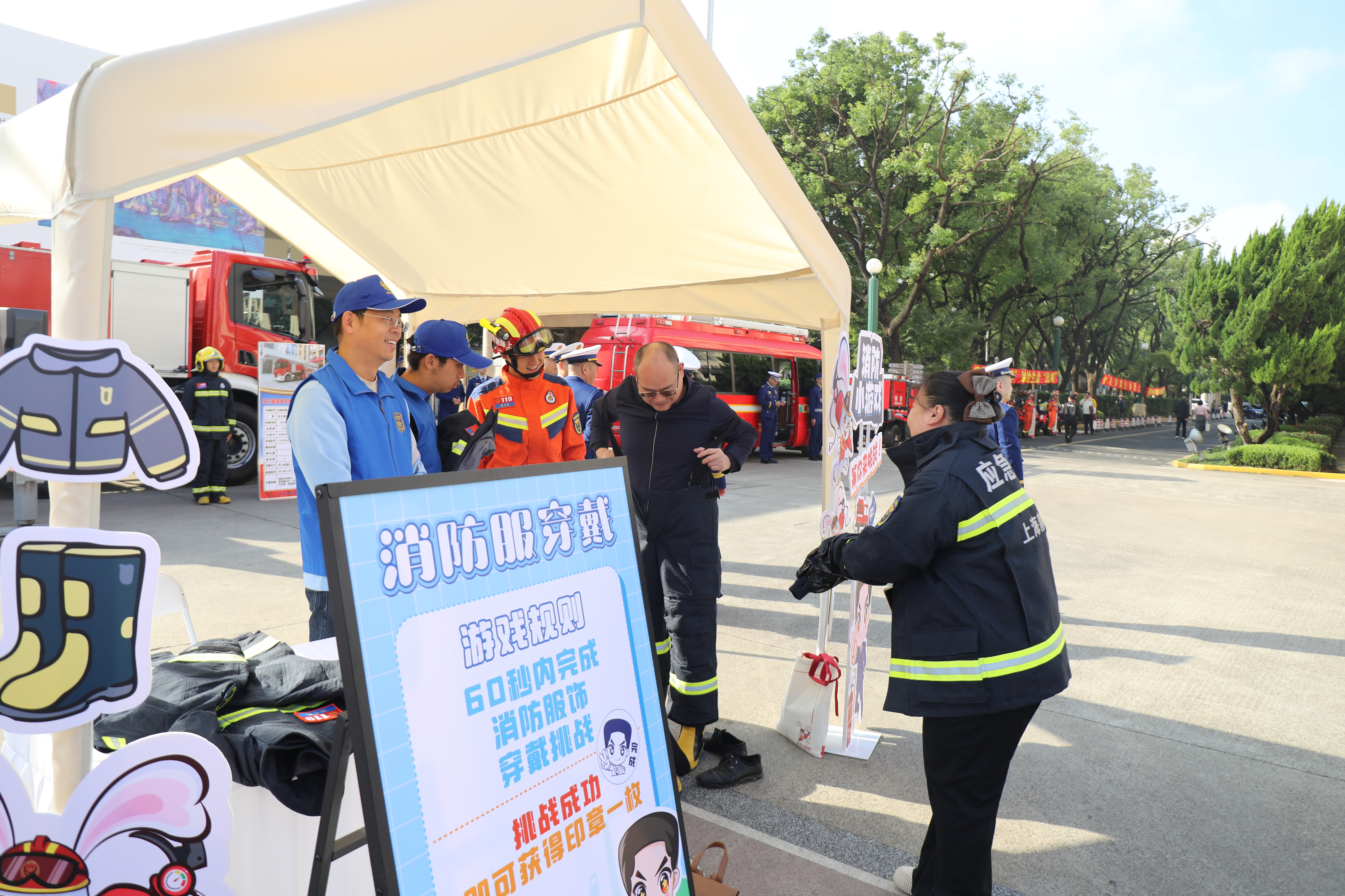 11月11日上午,静安区2024年“119”消防宣传月主题活动在上海展览中心广场举行。