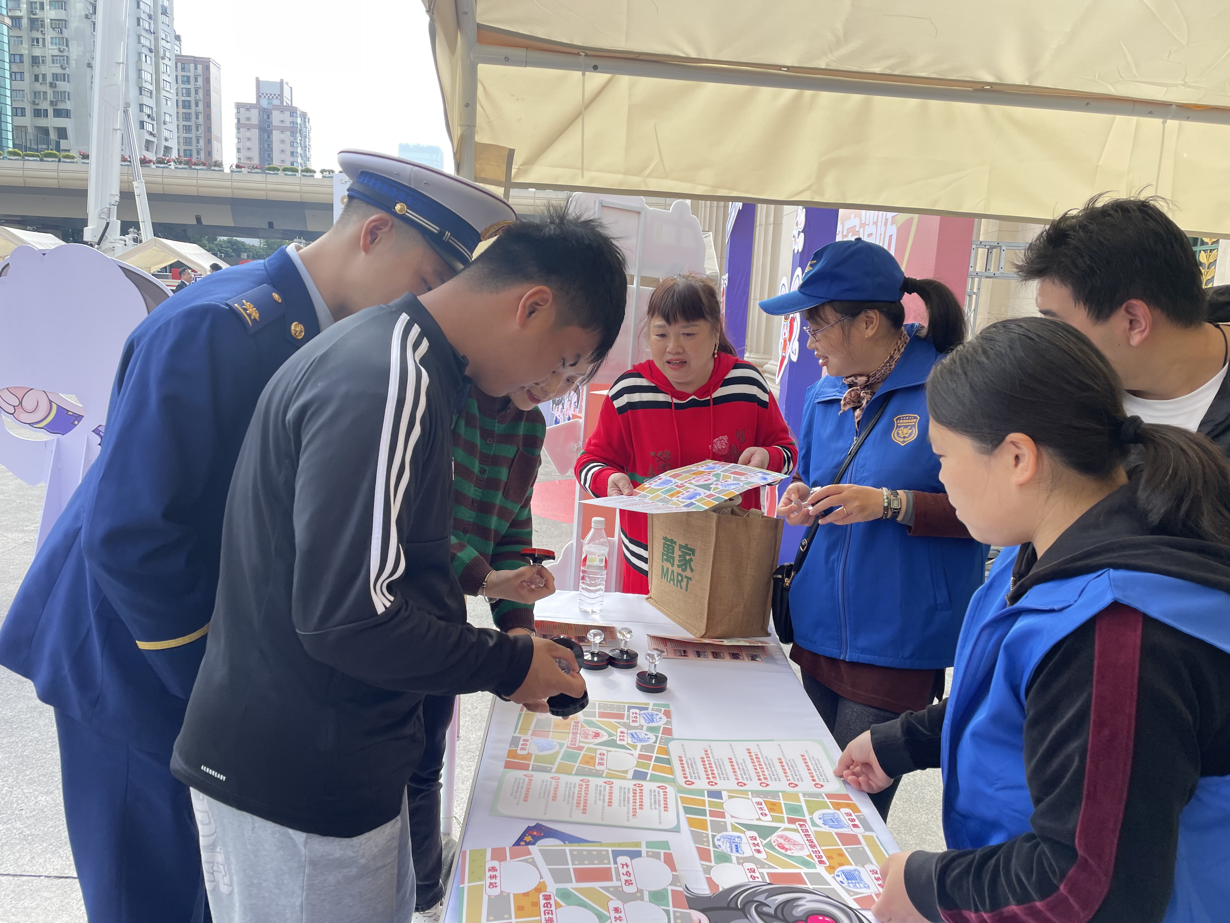 市民可以领取集章卡,通过消防服、防烟面罩穿戴,消防知识竞答,逃生绳结打法等互动游戏收集印章,换取消防文创小礼品。