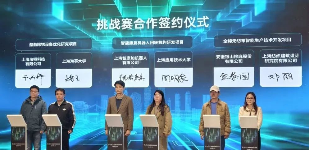 11月20日,第七届长三角国际创新挑战赛智能机器人专场活动现场,智能康复机器人回转机构研发项目、船舶除锈设备优化研究项目、全棉无纺布智能生产技术开发项目、智能控制胸腹水渗漏设备项目、市政管道清污疏通机器人项目、光伏电厂无人机巡检系统开发项目现场达成供需双方合作签约。