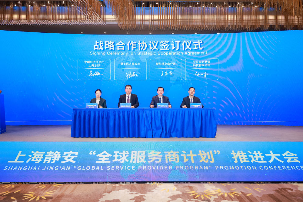 传媒及经济信息服务是专业服务业的重要组成部分。当天,静安区人民政府与新华社上海分社、中国经济信息社上海总部、北京华新财信科技有限公司(中国财富网)签署战略合作协议。四方将在高端智库、产业大数据、海外推介及传播、数字政府、重大活动等多个领域开展合作,实现资源共享、优势互补、互相促进、共同发展。