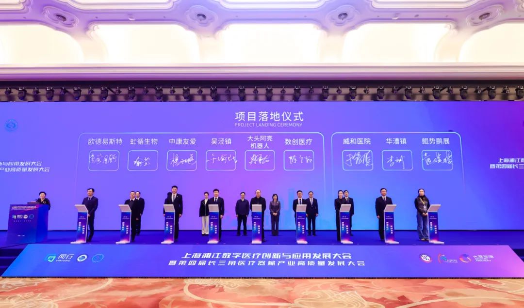 开幕式上,威和医院、普笙生物、中康友爱、大头阿亮机器人、叁联人科技等14个项目集中签约,涉及数字化心电技术、智能化心电诊断、关节修复治疗、机器人与医疗康复设备制造、一类创新中成药等细分产业领域,将为闵行数字医疗与医疗器械领域注入创新活力,有力推动区域生物医药产业高质量发展。