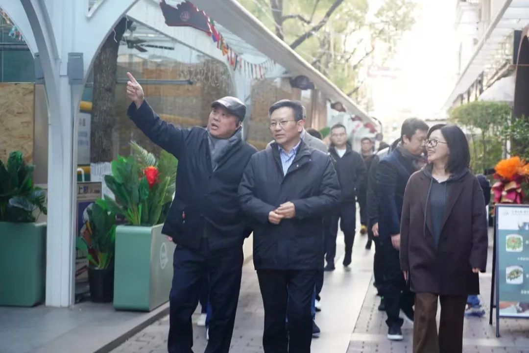 12月15日下午,区委副书记、区长陈华文来虹桥镇调研商业街区运营情况,区府办主任刘坚、区商务委主任彭哲颖、虹桥镇党委书记范丽春陪同。