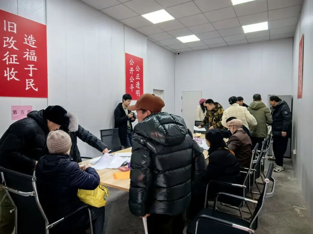 早上7点不到,就有居民带着资料赶来签约。尽管室外寒气逼人,室内却是一片火热、气氛热烈,签约工作如火如荼地进行着。当天13点50分,签约率达到90.18%,项目正式生效。