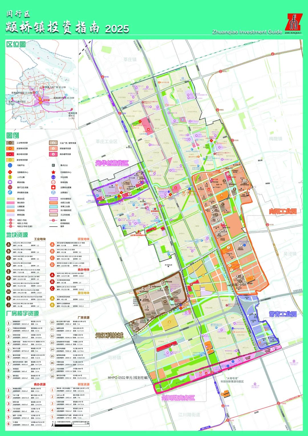 根据地图,颛桥构建了围绕智能制造业、现代服务业、未来产业的“3+3+1”发展体系,形成了“两轴三区五园”的空间格局,打造光华创意街区、向阳工业园、元江科技城、常青工业园与剑川路商务区重点板块。地图还展示了颛桥优势配套资源,包括约166公顷可出让土地资源、30+可租优质产业空间,覆盖工业、研发、商办等多重需求。