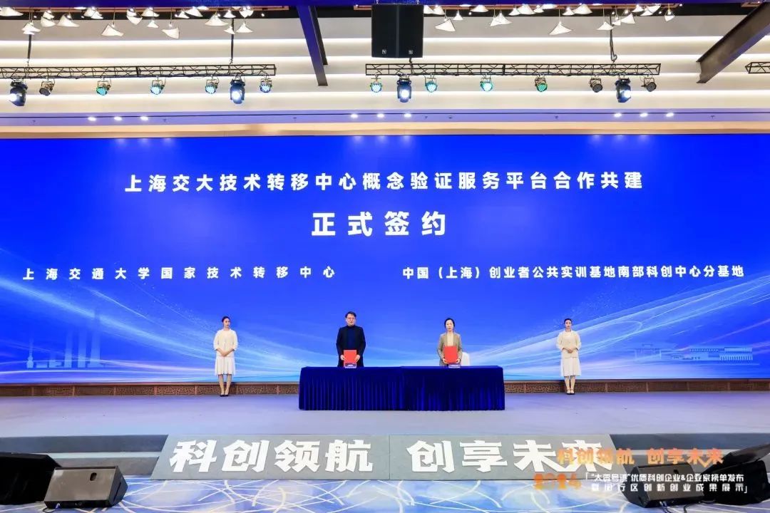 与此同时,上海交通大学国家技术转移中心与中国(上海)创业者公共实训基地南部科创中心分基地达成合作并进行了概念验证服务平台合作共建签约仪式。
