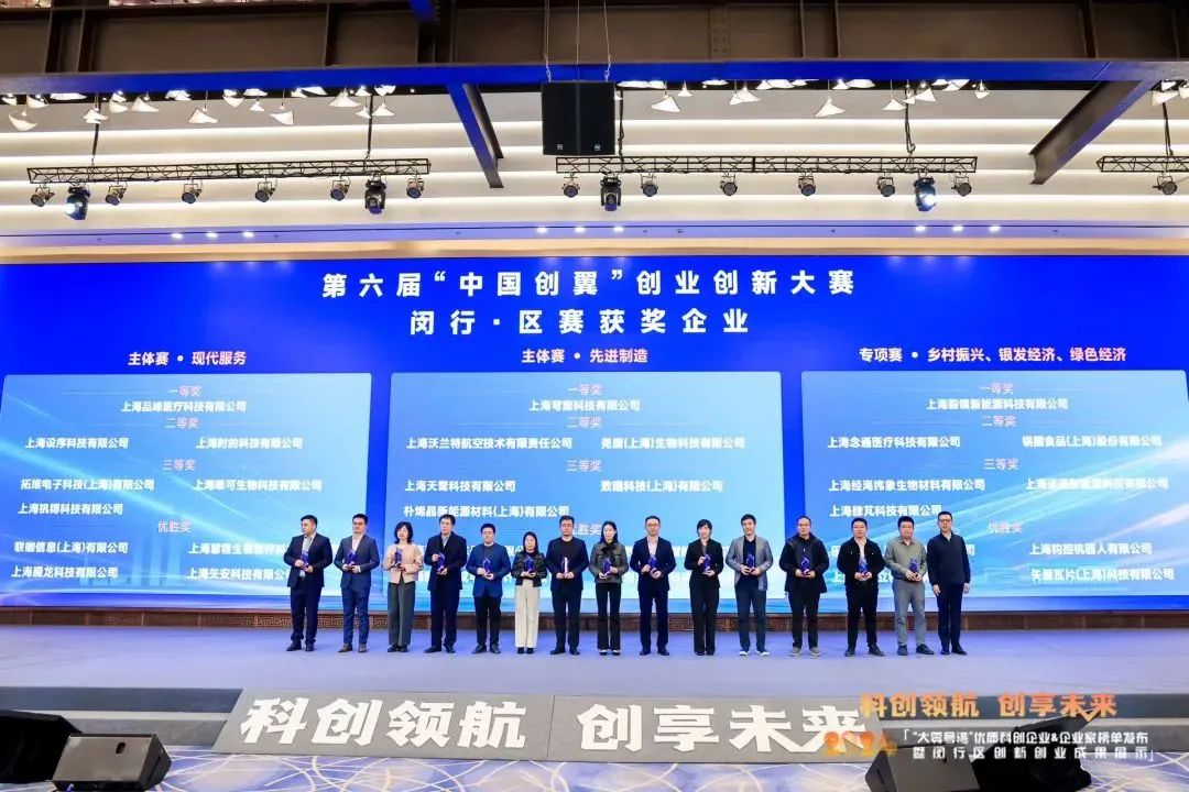 活动为第六届“中国创翼”创业创新大赛中获奖的闵行区企业颁奖,闵行区的参赛项目获得了市赛奖项9项、国赛奖项5项的优异成绩。2024年“大零号湾”科技新锐企业榜单揭榜发布,25家科技新锐企业脱颖而出。这些企业在各自领域内的突出成就为闵行区经济高质量发展贡献了力量,更彰显了“大零号湾”作为科创产业高地的吸引力和支持力。