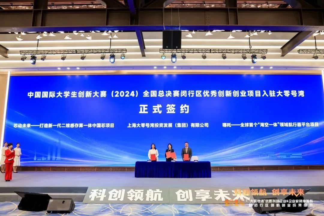 活动现场,上海交通大学“哪吒——全球首个‘海空一体’跨域航行器平台”项目、华东师范大学“芯动未来——打造新一代二维感存算一体中国芯”项目正式签约入驻“大零号湾”,他们将在这里扎根发展,为区域发展注入新的活力源泉,也为高校成果产出与产业实践的紧密结合提供了范例。