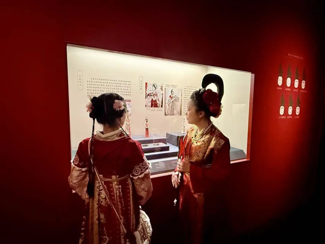 “您喜欢今天的展吗?”“当然,谁不喜欢盛世呢,那份繁华与美好,总能让人心生向往。”刘女士说。此次展览恰逢新年,展厅设计以红色为主色调,外饰唐风红灯笼墙,烘托春节气氛,成为不少观众拍照“打卡”的好去处。