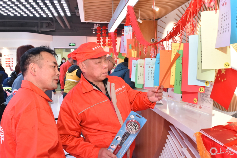 静安区委组织部等部门领导向新业态新就业群体和户外职工代表,发放了春节慰问礼包,并为各位代表发放“来到阵地就是家,静安邀您过大年”活动菜单。