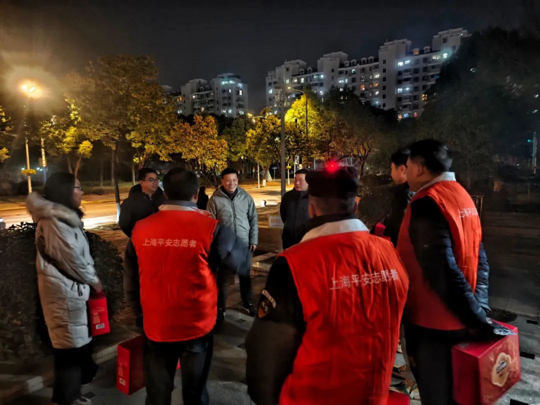 除夕夜晚,镇党委书记金海民,党委副书记孙卫东,党委委员、副镇长石建浩前往星火村、万科青藤、嘉怡水岸、永德宝邸、甘露寺等地,向坚守在烟花爆竹安全管控一线的平安志愿者们送上节日问候,并对区域内当前烟花爆竹管控情况作了解。金海民强调,要做好解释、宣传工作,切实树立风险防范意识,将风险隐患控制在源头。