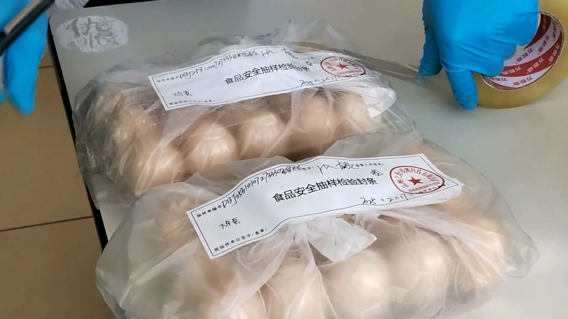 “今天我们还要开展‘你点我检’的活动,由第三方专业人员,随机抽取食品原料,封样送检。”在监管人员夏丹尔的陪同下,第三方检测机构取样人员随机抽取了学校的鸡蛋和青菜样本。“检测的鸡蛋重量要大于1.5公斤,青菜的重量要大于2.5公斤,且非净菜。”第三方检测机构的取样人员完成样品采集后,逐一对样品进行装袋封存。