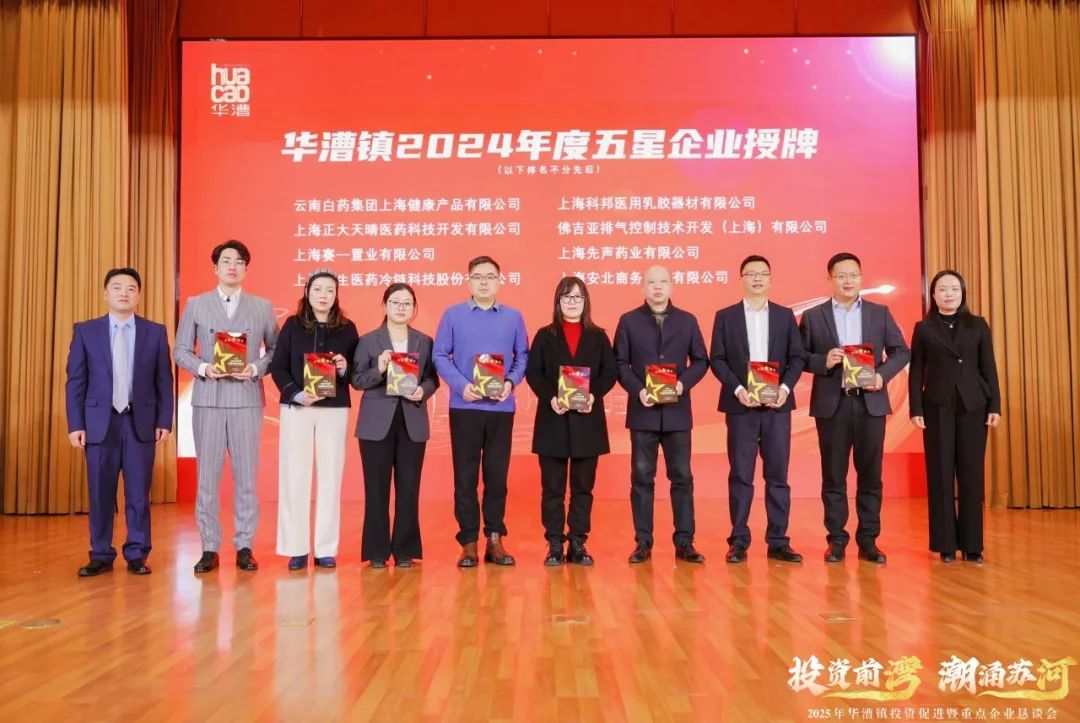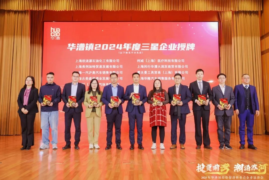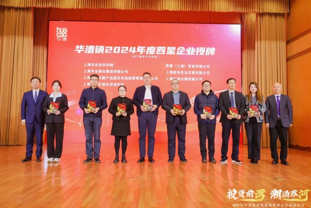 新企业的入驻为地区发展注入新活力,企业所看重的扎实产业基础,是华漕本土企业“老朋友”们的深耕与发展的成果。活动上,华漕镇举办星级企业授牌仪式,刘飞、彭秀峰、李斌、李炜,镇党委副书记杨春华、史雪霏分别为威高集团、信达生物、卓然工程、鸣志电器、上海美国学校在内的25家“五星”企业、24家“四星”企业、32家“三星”企业授牌,感谢他们2024年为华漕镇经济实现平稳向好的高质量发展态势做出的积极贡献。