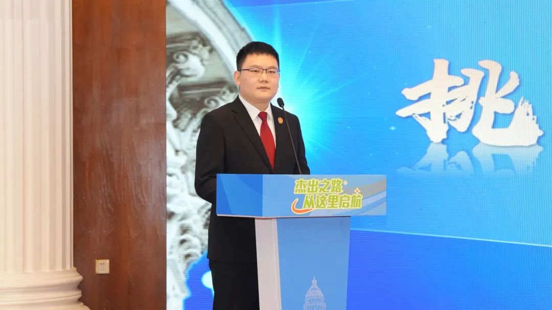 市高院直属机关党委办公室主任张海,院党组副书记、副院长薛林为营员颁发“闵杰青训营优秀营员”荣誉证书