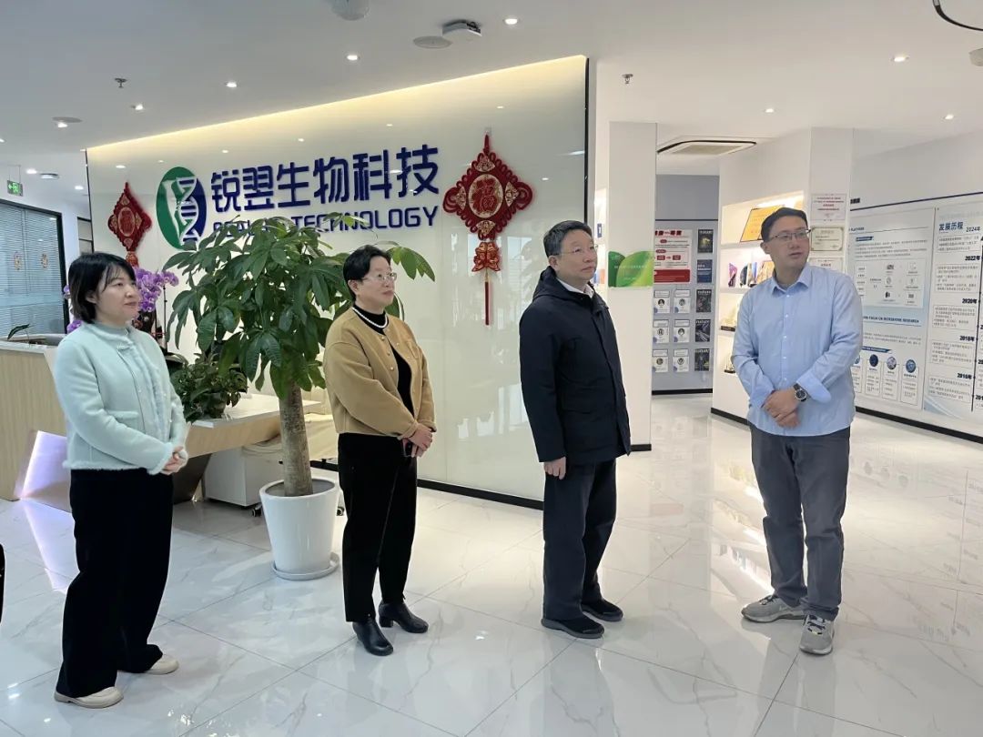 王观宝一行走访了秦楠代表所在的锐翌生物科技有限公司,听取了企业发展介绍,详细了解了企业开展“重点人群大肠癌早筛”民生实事项目的情况。