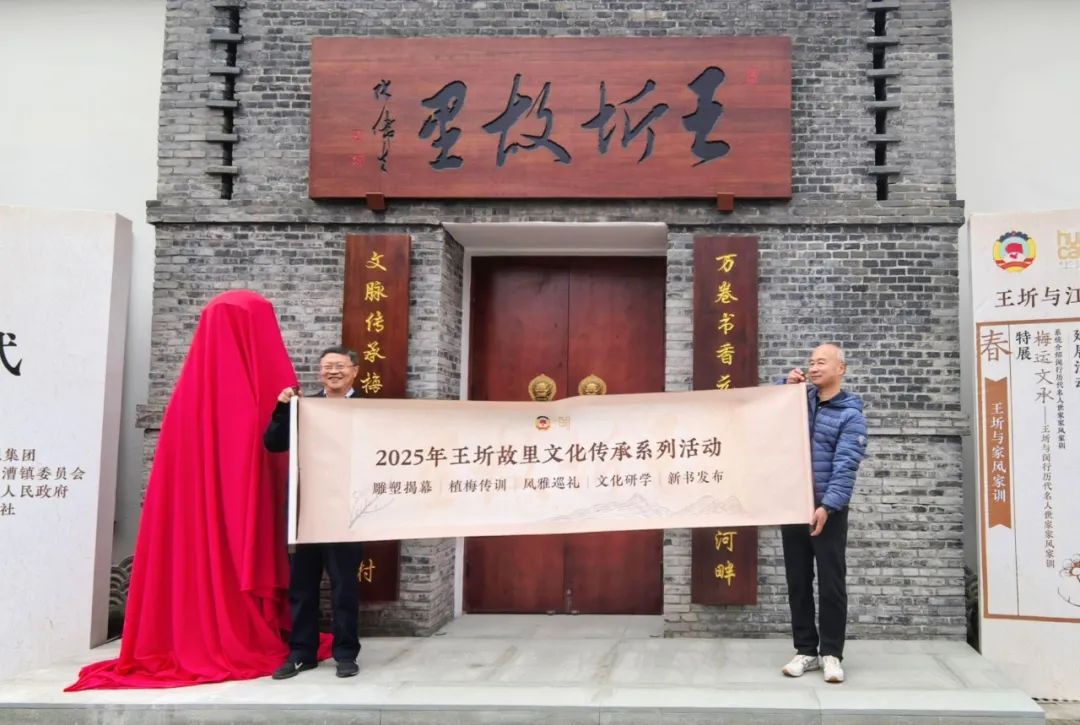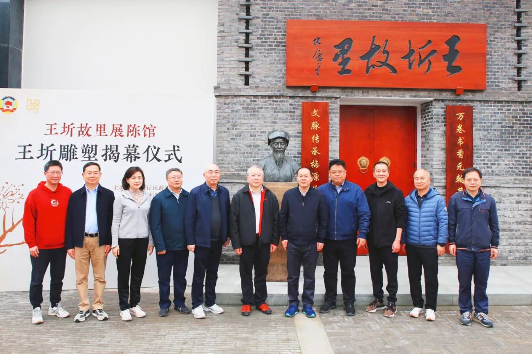 在活动现场、王圻故里展陈馆门前,祝学军、唐劲松为王圻雕塑揭牌,阚宁辉、李阳、谢辉、蔡怿晖、何曙光、彭卫国、韩朝阳、李炜、孙瑜共同见证。