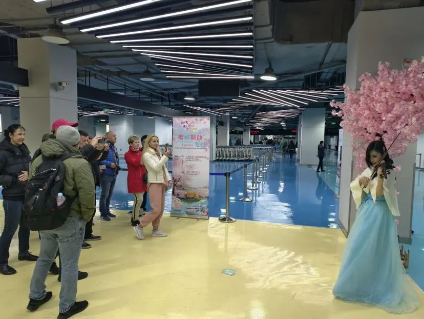 为持续提升外籍游客入境体验,宝山区会同驻区口岸保障部门,优化通关流程,完善配套设施,提供更便利贴心的服务。同时,针对国际游客需求,到达大厅还特设外币兑换、电话卡办理等“一站式”服务窗口,并配备多语种志愿者引导。