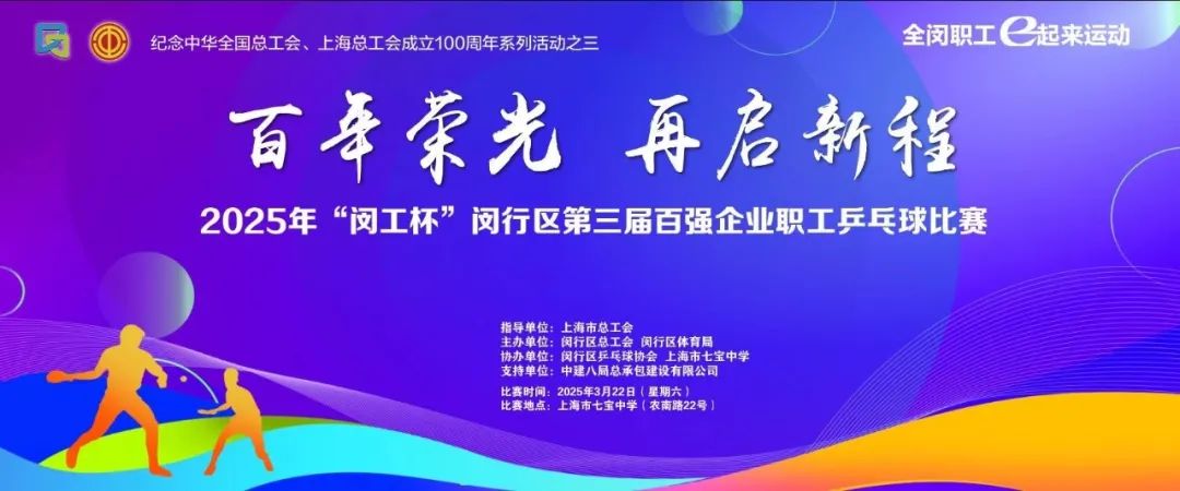 今年是中华全国总工会、上海总工会成立100周年,为深入学习贯彻党的二十届三中全会精神,全面贯彻落实习近平总书记关于工人阶级和工会工作的重要论述,实践“强信心、聚合力、促发展”工作理念,进一步丰富职工体育生活,3月22日,由上海市总工会指导,闵行区总工会、闵行区体育局主办,闵行区乒乓球协会、上海市七宝中学协办,中建八局总承包建设有限公司支持赞助的2025年“闵工杯”闵行区第三届百强企业职工乒乓球比赛在七宝中学圆满落幕。来自全区百强企业及区域化工会共建联盟单位的40支队伍、250余名职工参加比赛。
