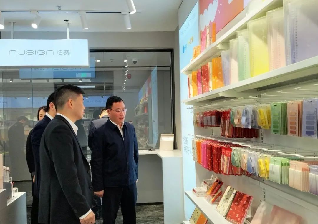 在得力集团纽赛产品展厅,区领导仔细察看了保温杯、计算器、橡皮擦等纽赛最新文创文具用品,询问了线下旗舰店总体布局情况。在得力仓库,区领导详细了解了得力集团在仓储物流、供应链优化和智能化管理等方面的情况,听取企业负责人对行业发展的研判和分析。陈宇剑表示,闵行将持续打造市场化、法治化、国际化的一流营商环境,为企业提供政策支撑,支持企业深耕办公文具生产制造领域,加强行业前瞻性研究和新材料、新技术的研发与引进,走在文教行业前列,彰显大国品牌实力。