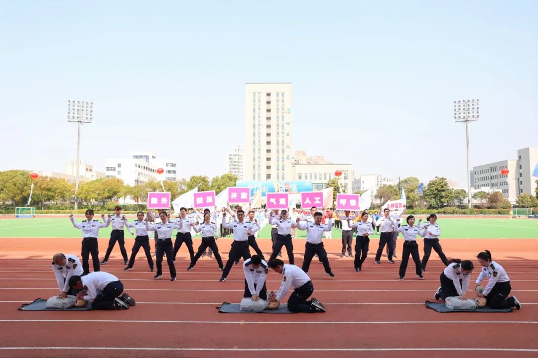 开幕式结束后,急救接力赛、集体拔河、集体跳绳以及鸿运彩球比赛相继开展,赛场上,掌声、笑声、加油声、呐喊助威声此起彼伏,场面十分热闹,获胜的参赛队更是激动不已,击掌庆贺,欢欣鼓舞。