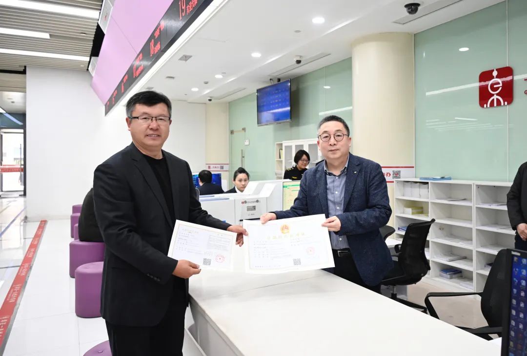 启动仪式结束后,与会领导还来到政务服务中心服务窗口开展现场帮办,为上海大学配膳中心项目颁发《食品经营许可证》。