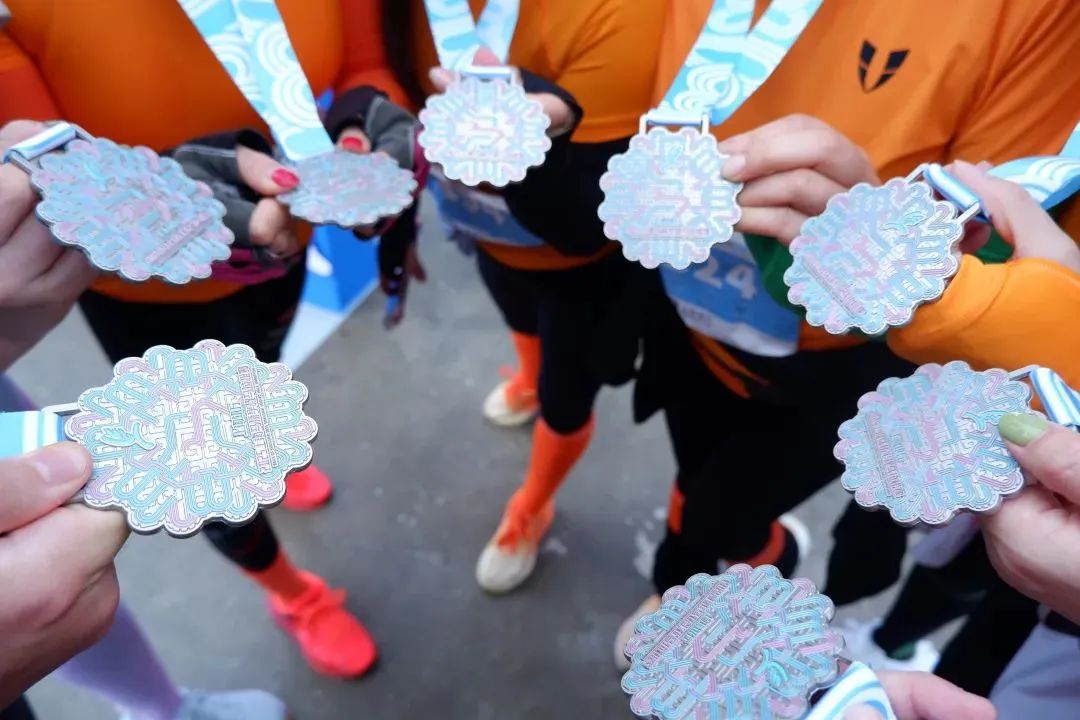 如果说21公里的马拉松是高手之间的竞逐较量,5公里的健康跑则是与春天的诗意约会。孩子们小手牵大手欢快地冲向终点,戴着完赛的小奖牌兴奋不已:“我跟着爸爸妈妈跑完了全程!”