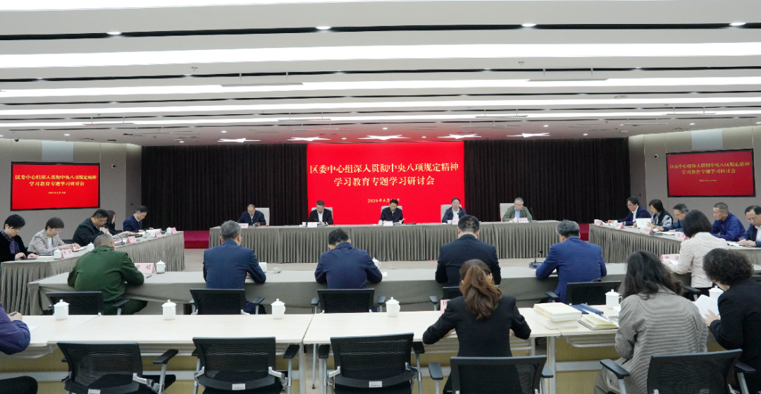 参观结束后,区委中心组举行了专题学习研讨会,区委书记陆方舟主持会议。区委副书记、代理区长吴强领学《习近平关于加强党的作风建设论述摘编》的部分章节,区委副书记唐劲松,区委常委、区纪委书记、区监委主任梁经军结合参观体会和工作进行交流发言。