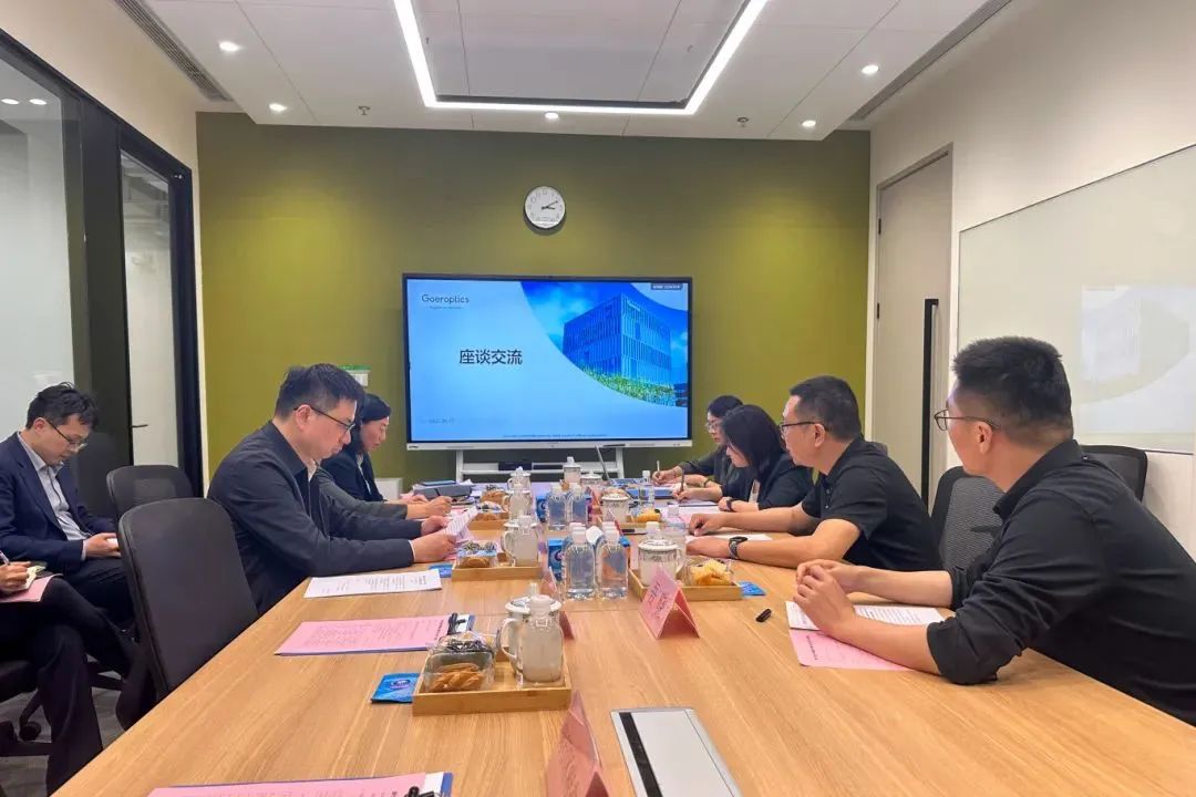 在歌尔光学,谭瑞琮副区长一行参观了企业展厅,深入了解企业主要产品及特色,并开展座谈交流,听取企业目前面临的问题和诉求,作出具体回应。