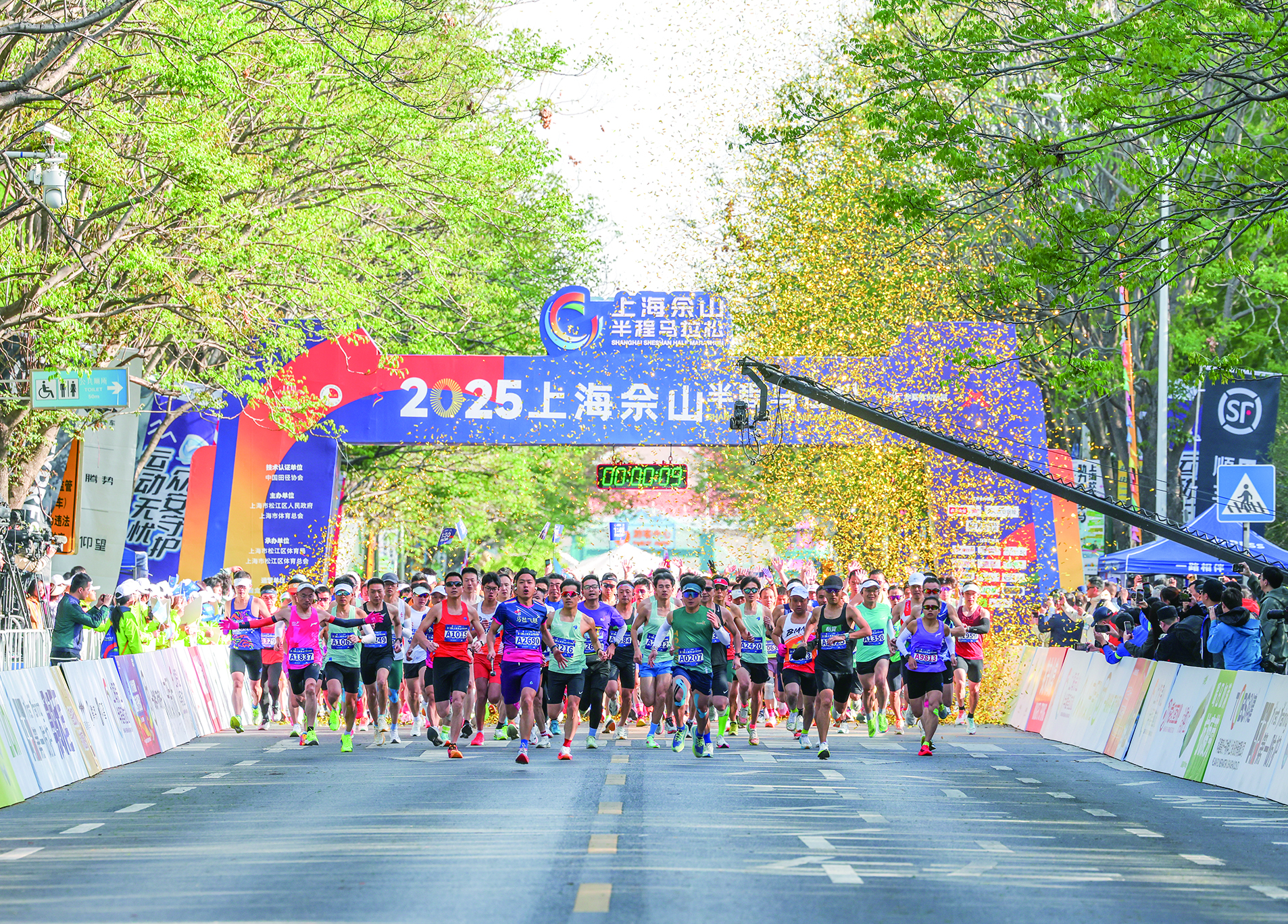 4月13日7:30,2025上海佘山半程马拉松鸣枪起跑,8000名选手在21.0975公里赛道上穿越科创人文交融的松江,探寻“上海之根”文化底蕴(见上图)。