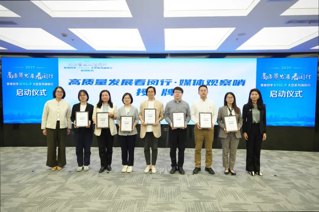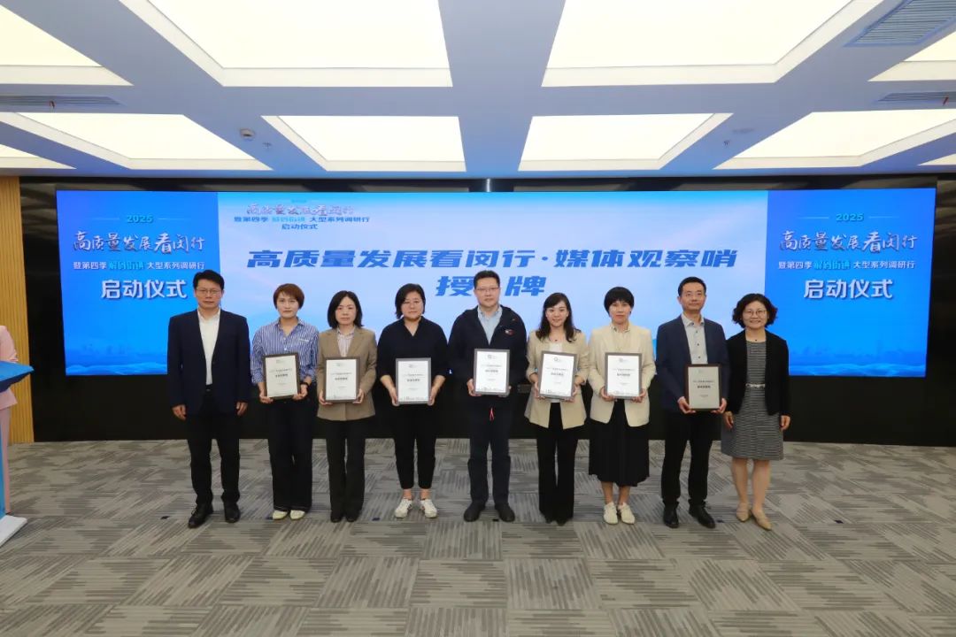 现场,同时发布了14个“高质量发展看闵行·媒体观察哨”并授牌。“观察哨”涵盖产业升级、科创孵化、产城融合等关键领域,有体现高水平开放的虹桥海外发展服务中心、虹桥基金小镇;有汇聚创新创业载体的华谊万创·新所、莘闵留创园;有集聚未来产业集群的浦江临港国际科技城、中宠汇国际创新产业基地;有展示产城融合样本的TODTOWN天荟、七宝生态商务区。这些“媒体观察哨”既为媒体深度观察闵行发展开辟了全景式窗口,也为区域高质量发展树起了标杆性坐标,将成为媒体感知闵行发展脉动、见证产城融合、解码创新生态的前沿阵地。