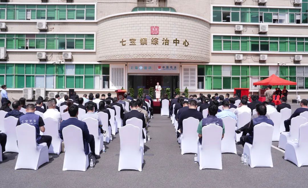 4月24日上午,闵行区举行法官(检察官)入驻街镇综治中心签约仪式暨七宝镇综治中心揭牌仪式。