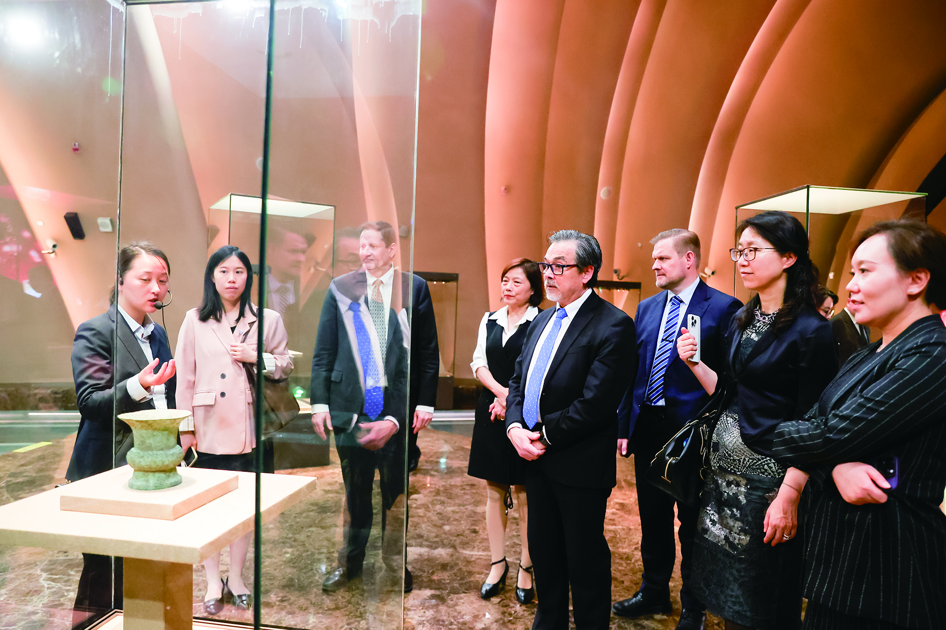 大半建筑群的建筑主体淹没在湖中,从远处眺望,仅有屋顶在湖面上若隐若现……当天下午1时,来到广富林文化遗址水下博物馆,访问团成员的视线立即被其独特的设计风格所吸引,不少成员在馆前合影留念。随后,访问团成员走过栈道,来到广富林考古遗址展示馆(见上图)。在讲解员的介绍下,从新石器时代至明清的陶器、石器、玉器等文物,令访问团成员印象深刻,尤其是馆内保存完好的史前房屋遗迹,更让不少成员感叹不已。“自2009年起我就常来中国,但这是我第一次来到松江。”赛诺菲副总裁兼全球知识产权主管约翰・科威说,“这里的文化底蕴让人惊叹,毫无疑问这是一座美丽、充满活力的城市。”