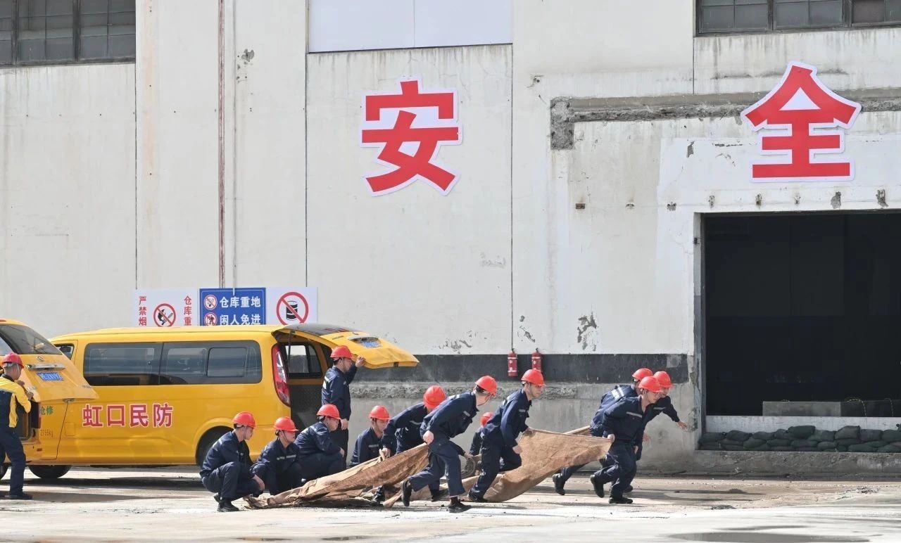 暴雨倾盆中抢险队员疾驰封堵积水,浓烟滚滚下无人机精准投弹灭火,寒风呼啸里撒盐车紧急铺设防滑通道……5月20日,一场覆盖防台防汛、消防灭火、房屋坍塌、空气重污染及寒潮冰冻五大险情的“2025年度上海市建、构筑物拆除行业防台防汛暨突发事件应急抢险演练”在普陀区岚皋粮库拆除工地开展。