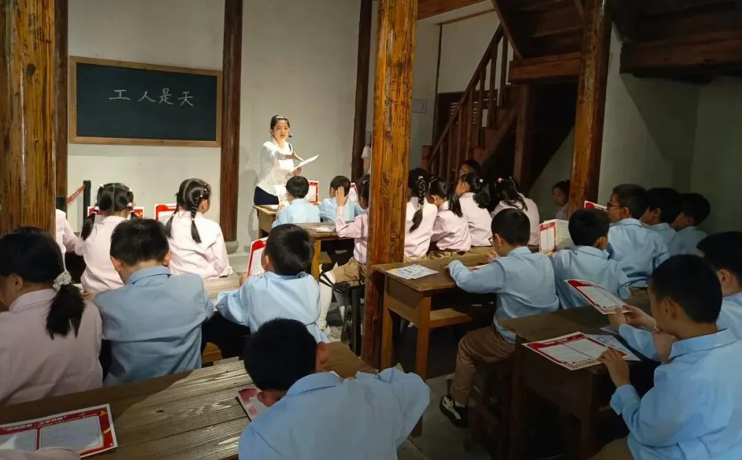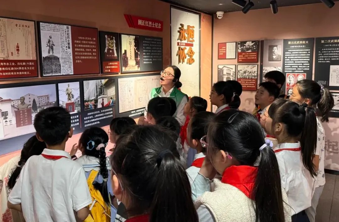 在沪西工人半日学校史料陈列馆,青少年们穿过复原的教室场景,触摸到油灯、课桌、黑板等等。高中生志愿者以“青春对话青春”的视角,将李启汉等教员的故事娓娓道来,而微电影《光芒》中“纱厂女工夜读识字”的片段,更让青少年们直呼“历史书活了”。当青少年们踏入顾正红纪念馆,高中生志愿者们用同龄人的视角讲述历史,在观摩了微电影《英雄先烈播火沪西》,顾正红烈士“工人不团结,永无出头之日”的呐喊,让无数少年红了眼眶。