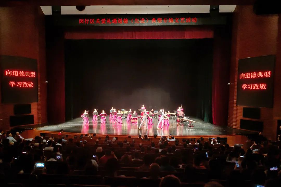为积极营造崇德向善的社会氛围,大力倡导尊崇道德模范、关爱身边好人、学习先进典型的良好风尚,5月25日,闵行区关爱礼遇道德(先进)典型专场文艺活动暨《我和我的祖国》民族管弦音乐会在上海城市剧院举行。