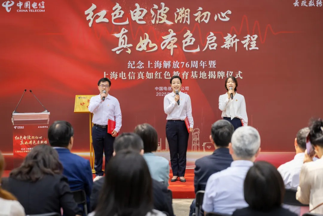 近日,中国电信上海公司举行纪念上海解放76周年暨基地揭牌仪式,市通信管理局党组成员、副局长贺丰,区委副书记周艳,市经信工作党委二级巡视员张成金,中国电信上海公司党委副书记、副总经理、工会主席马明等出席活动。活动现场为“上海电信真如红色教育基地”“红色电信讲堂”揭牌。