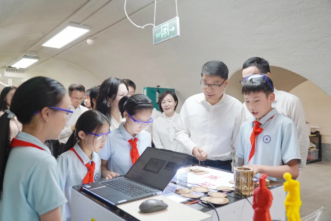 在同济大学第二附属中学初中部,区领导一行参观了学校楼顶操场、图书馆、体育馆等场所,全面了解学校办学历史、教育理念、办学规模及师资配备情况。在洵阳路小学,区领导一行参观了手工、艺术、科学课程等跨学科学习空间,在学生作品中感受丰富、多样、个性化的教学成果和先进的办学理念,区领导对两所学校在课程改革、人才培养领域取得的显著成效给予充分肯定。此外,区领导还深入学校食堂,听取供餐公司、选餐方式、学生用餐情况介绍,现场询问管理制度落实情况。