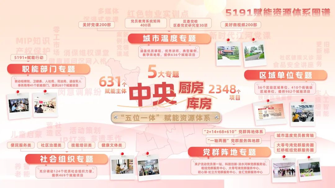 政治赋能是核心。依托200部美好党课、400多个党员教育矩阵资源,全面提升各领域党员教育质效。充分发挥职能部门赋能基层主力军的作用,实施“5191+”赋能行动,检察、红色物业、退役军人、就业等一系列项目先后落地。整合区域单位和社会组织力量,丰富赋能资源供给,113个区级区域单位和400多个街镇区域单位提供了近千个赋能项目。强化党群服务阵地赋能枢纽功能,着力打造“一轴两圈”党群服务阵地群,发布了首批6个现场教学点位,持续夯实资源赋能实体支撑。