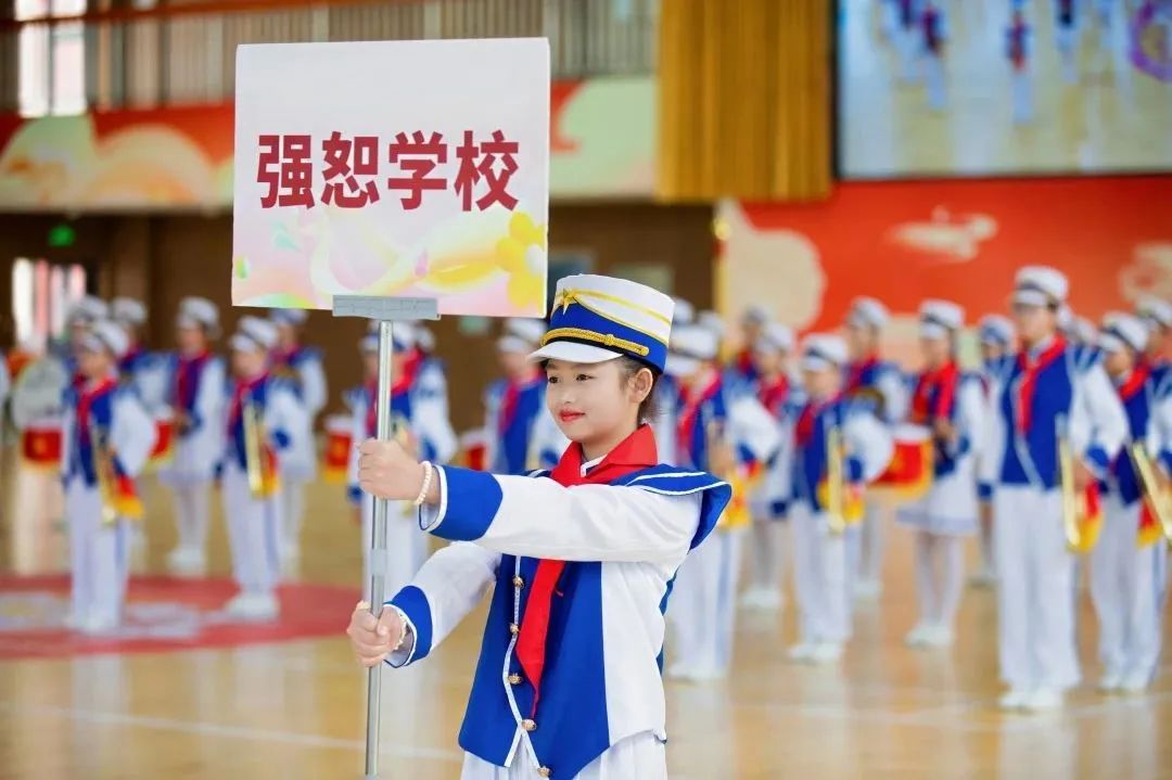 “咚咚锵,咚咚锵,咚锵咚锵……”鼓声清脆、号声嘹亮,来自明强二小、强恕学校、七宝实小、莘庄镇小、华师虹桥、莘松中学、平南小学、实验小学的8支鼓号队齐聚一堂,以铿锵鼓乐奏响青春旋律,展现了新时代少先队员朝气蓬勃的精神风貌和团结奋进的昂扬姿态。活动上还为获得闵行区第八届少先队鼓号大赛特等奖、一等奖的学校颁发奖杯。