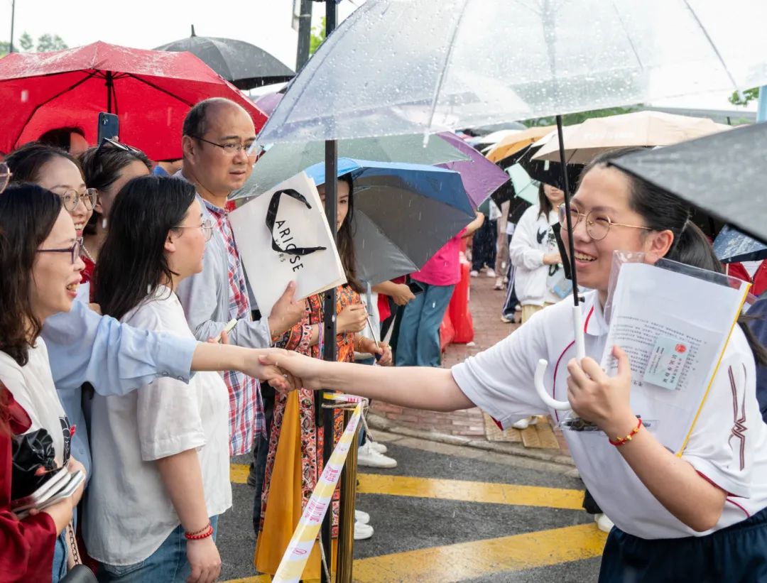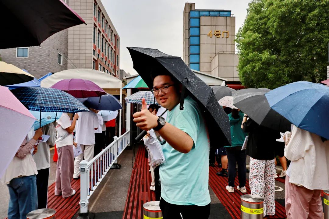 6月7日上午,2025年上海高考正式拉开帷幕,金山约2000名考生奔赴考场。阴雨潮湿的天气下,送考家长和老师对考生们加油鼓劲,殷殷嘱托此起彼伏。