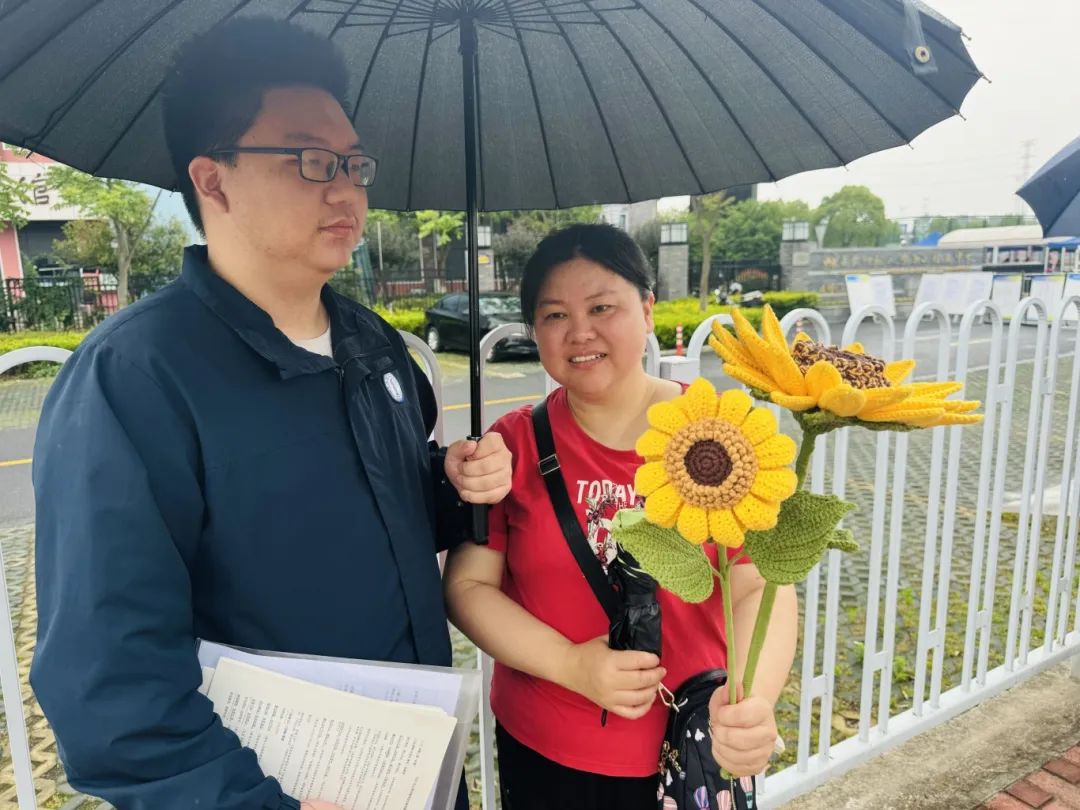 家长施翠萍拿着自己编织的两朵毛线向日葵,兴奋地告诉记者:“希望孩子能‘一举夺魁’,考个好成绩。”一旁的儿子卢察磊感动不已:“妈妈有这份心意,我觉得很感动,我相信高考一定能考好!”