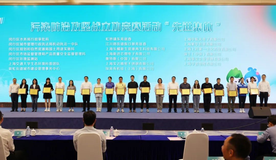 污染防治攻坚取得积极进展,环境质量持续改善:活动现场通过视频展播、案例分享等形式,呈现闵行区污染防治攻坚战的阶段性成效,并表彰污染防治攻坚战立功竞赛活动先进集体及先进个人。上海上药第一生化药业有限公司作为“先进集体”代表,分享了其绿色工厂减污降碳的实践经验。