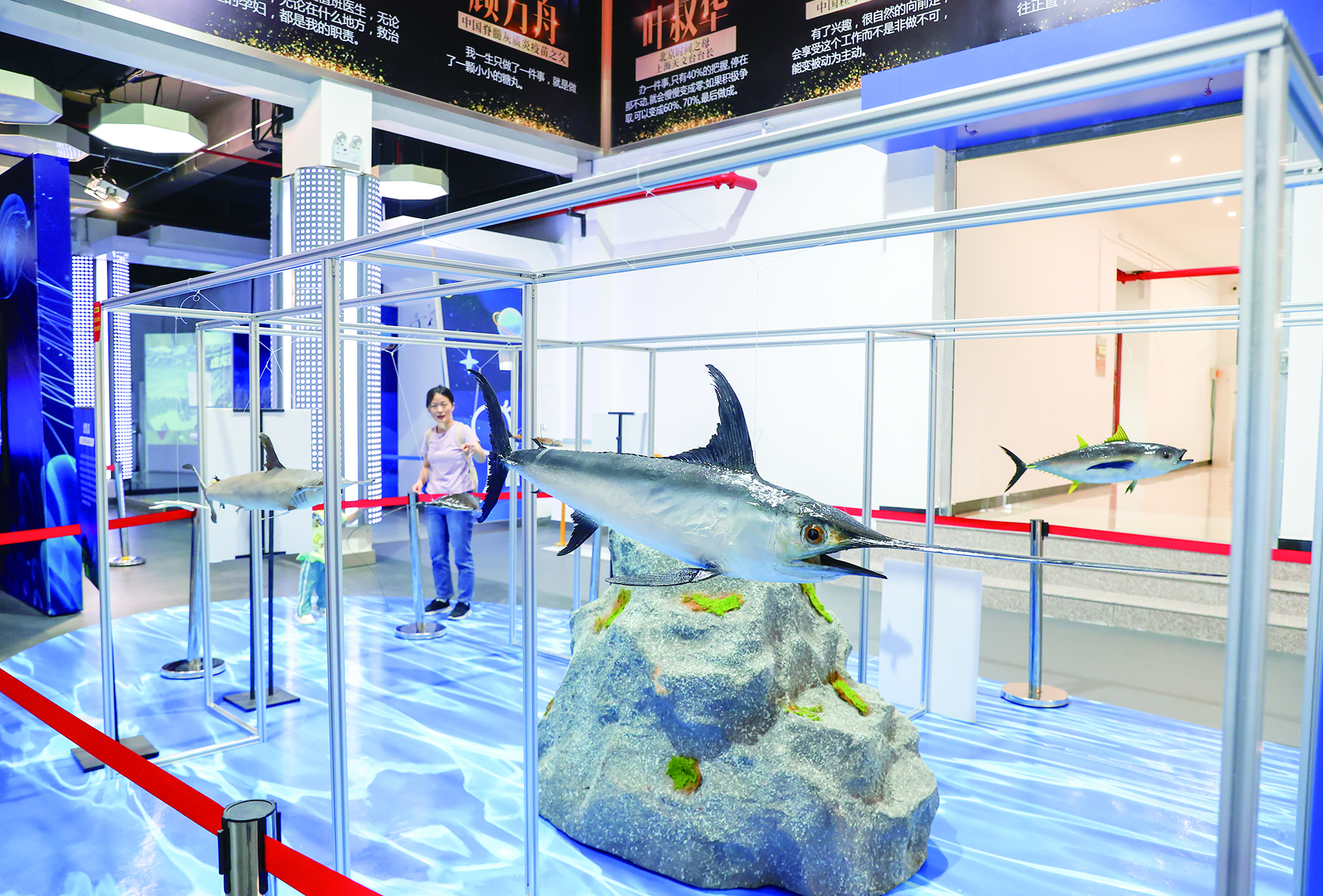 6月10日,松江区科技馆举办“蔚蓝秘境:海洋生态启示录”海洋生态主题科普展,通过活体海洋生物展示、珍贵标本展示和沉浸式体验等科普内容,带市民游客直观感受海洋的浩瀚、生命的神奇,一起认识海洋、热爱海洋、保护海洋。展览将持续至9月9日。