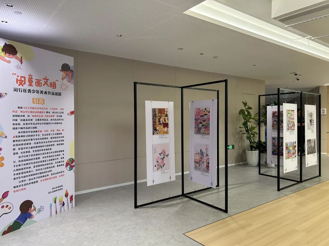 值得一提的是,作为市级重点项目——“闵童画文明”主题系列活动的线下巡展首站也于当天在正峰广场拉开帷幕。活动以“稚笔绘生活共筑文明梦”为主题,精选50余幅涵盖素描、水彩、水墨、漫画、版画等多种创作手法的优秀获奖作品进行展出,童趣灵动的笔画生动呈现了文明闵行、美好生活的幸福蓝图。